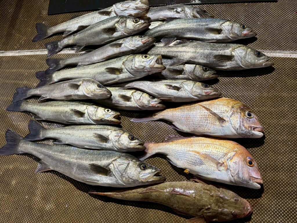 とにかく数釣りたいとのご要望でしたので、序盤から入れ食いを堪能いただきました。セイゴクラスから70までとサイズもいろいろ。